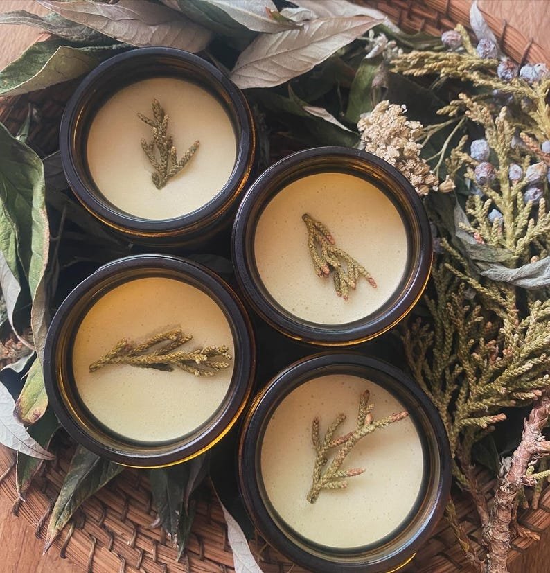 Mugwort Moon Face Neck and Body Cream is a solar infused herbal oil and butter base of organic Olive Oil, castor and prickly pear oil with whole plants of wild mountain and homegrown